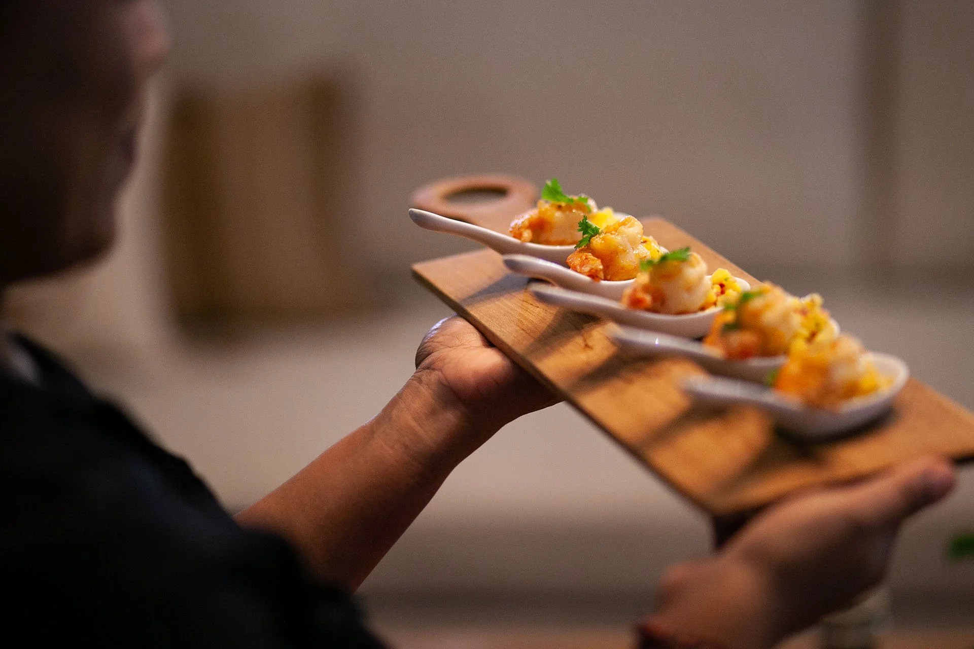 Elegant bite-size canapés, grazing boards to share, heartier mini-bowls, and miniature desserts.